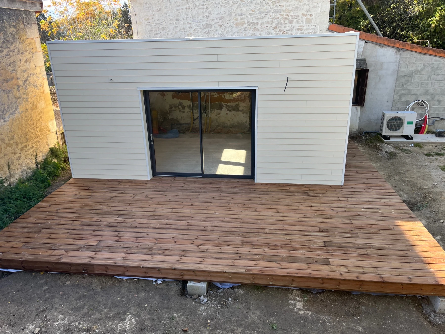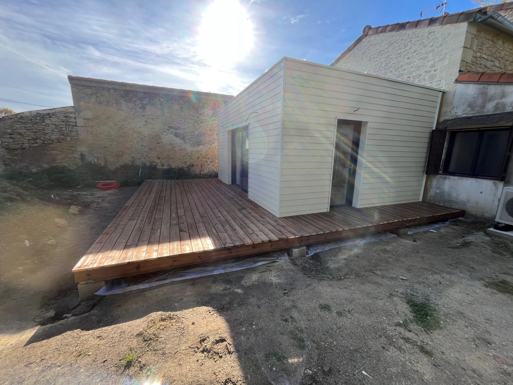 Bois & Renov réalise tous vos projets d'extension, surélévation, studio ou chalet de jardin, local pro, pool house ou cuisine d'été, mais aussi carport terrasse couverte, tous les aménagements extérieur(terrasse, table de piques nique , bancs ) ainsi que tous les bardages bois , fibres ciment ou encore bacs acier sans oublier la pose d'isolation par l'extérieur. Bois & Renov réalise aussi vos travaux de charpentes et de couvertures ( tuiles bac acier ) ainsi que les toits plats en EPDM.